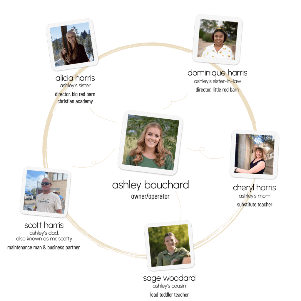 When we say we’re a family-owned center, we mean it! Family is at the core of who we are at The Little Red Barn, and it’s one of our top goals to be your child’s family-away-from-family. Here’s how some of the Barn’s staff share familial ties with our owner and operator, Ashley Bouchard: