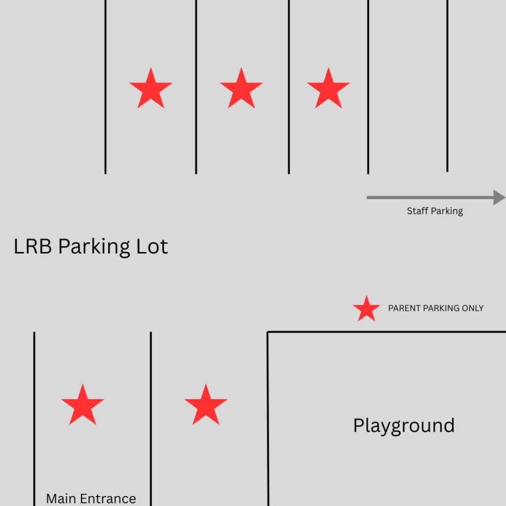 To keep drop-off and pick-up running smoothly for families, please make sure we are parking in the spaces on the far side of the parking lot! π See diagram below: